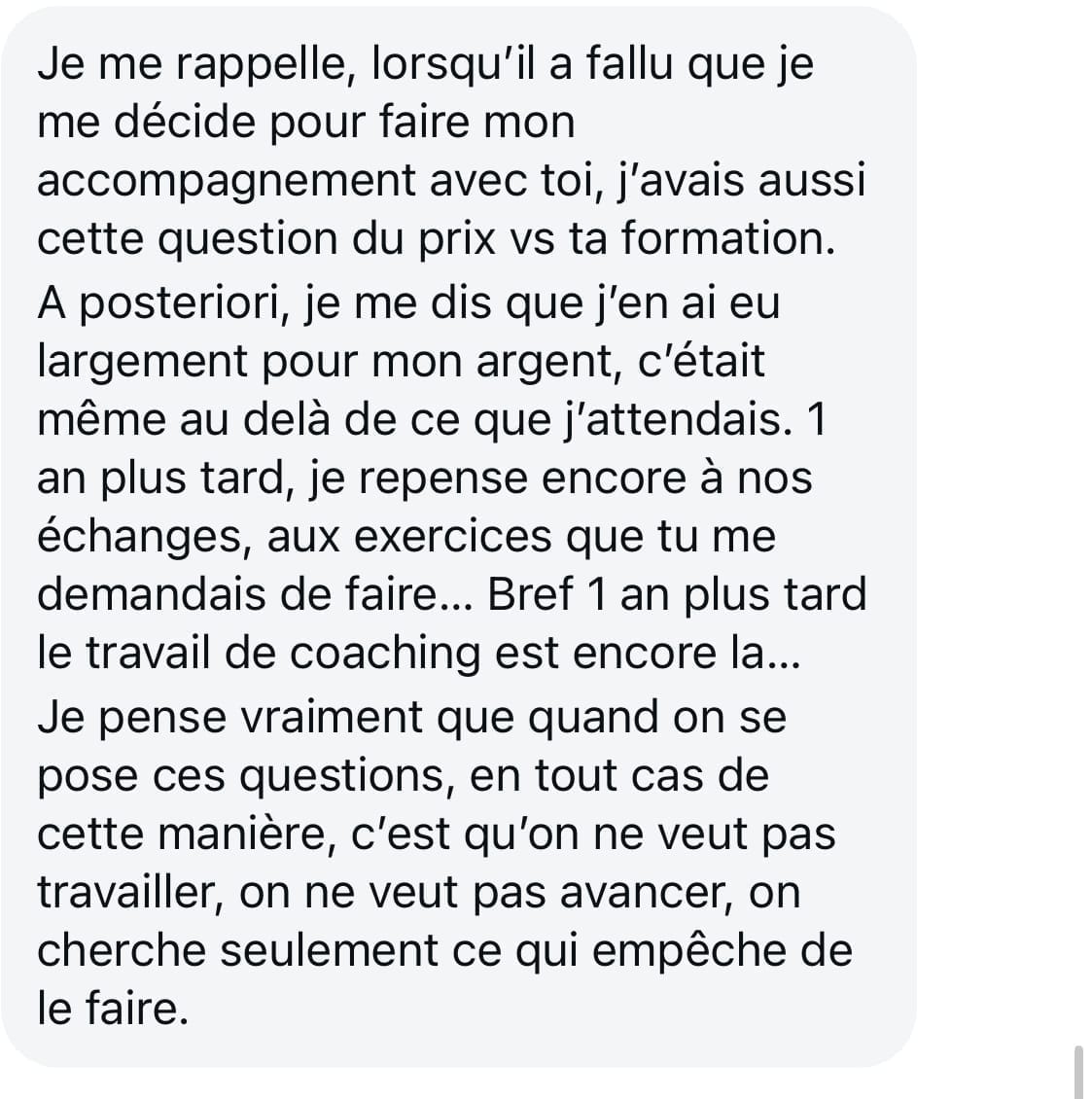 Le programme complet représente un investissement à 4 chiffres. C'est une décision importante, et c'est justement pour ça que nous prenons le temps de nous rencontrer lors du Call ÉTINCELLE avant de décider si nous sommes faites pour travailler ensemble.